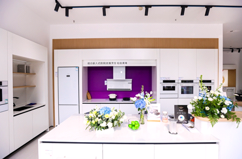 地标店通过沉浸式空间与场景化陈列,将科技、人文与自然的关系融入生活语境。空间以简约而富有层次的设计语言展开,在从容有序的氛围中呈现生活与品质的细腻交织,使“以简绎奢”的理念自然渗透于细节之中。围绕厨房、洗护与储鲜等多元生活场景,门店对不同品类产品进行系统呈现,让科技与日常生活相互融合,在舒适而有序的节奏中,勾勒健康、从容的生活状态,使品质生活的内涵在体验中被自然感知。